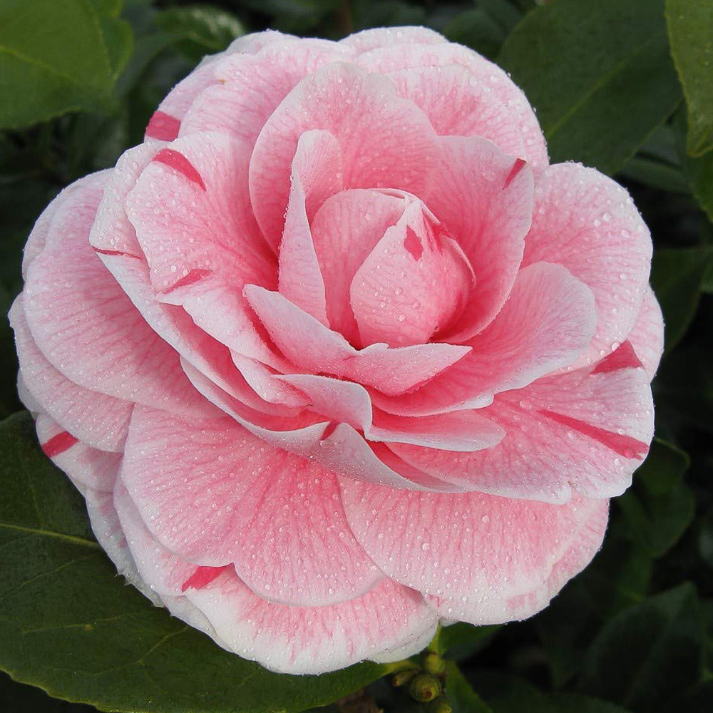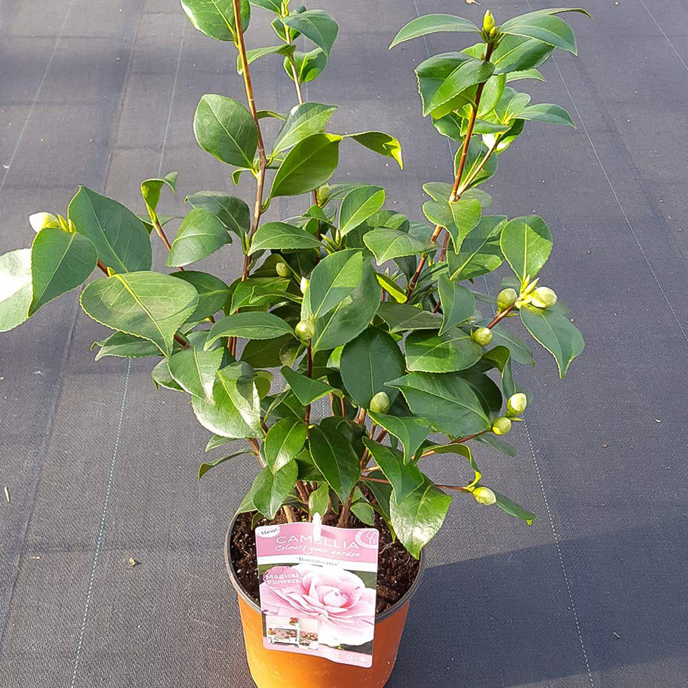 Bonomiana’ Camellia provides a heartwarming display of frilly, pink-streaked blooms set against fresh green foliage. Flowering from March to the end of May, this elegant camellia variety is a fantastic addition to any garden, providing year-round interest thanks to its evergreen leaves. A hardy, low-maintenance shrub, camellias thrive best in moist, well-drained, acidic soil and a sheltered, shaded spot. Where acidic soil is not naturally present, grow in patio containers filled with ericaceous compost and John Innes No.3, positioned in dappled shade. Water regularly until fully established, ideally using rainwater to maintain soil acidity. Feed occasionally with fertiliser designed for acid-loving plants. Shield from cold winter winds and strong early morning sunlight to protect against bud drop in early spring. Please note that the images are for guidance only and represent expected results from mature plants; variations may occur due to differing growing conditions and seasonal changes (for example, deciduous plants lose their leaves in colder months).
