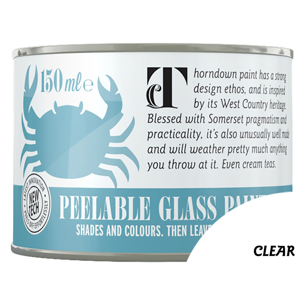 Transform any glass or shiny surface with Thorndown Clear Peelable Glass Paint. This innovative, water-based paint is made from resin and 100% recycled plastics, minimizing its environmental footprint. Perfect for temporary decorations (think Christmas, Halloween, or parties!), or for permanent craft projects on tiles, mirrors, shower screens, and more, its peelable nature offers unparalleled flexibility. Create stunning shading or privacy solutions that are easily removed. This translucent paint is non-toxic, virtually VOC-free (0.05%), and halogen-free. Durable and water-repellent, it's suitable for indoor or outdoor use on glass, polycarbonate, and acrylic glazing. With a coverage of 12 square meters per litre, this ready-to-use paint is a joy to use, whether brushed, rolled, sprayed, or mixed for custom colours. The old coatings can be recycled. 150ml.
