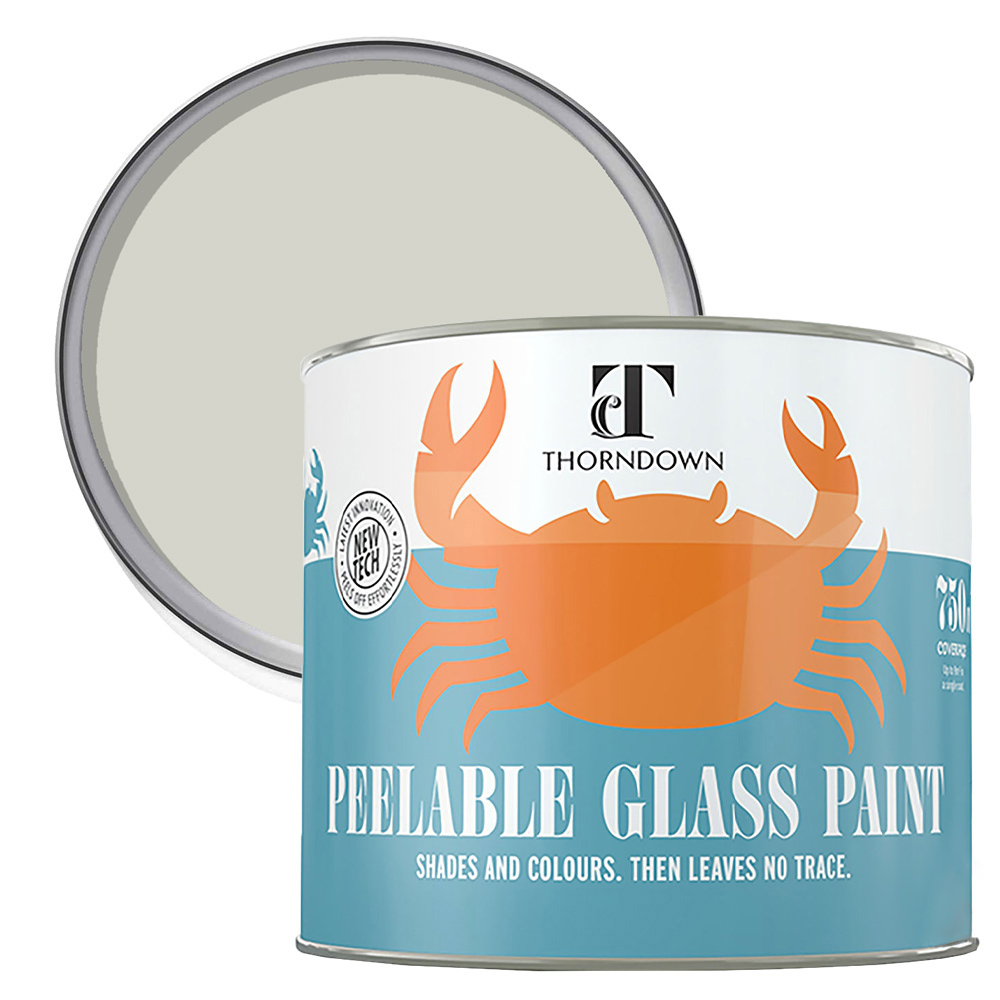 Transform glass and shiny surfaces with Thorndown Greymond Peelable Glass Paint. This unique white and grey blend, inspired by our original workshop, is made with 100% recycled plastic resins. Its water-based formula is incredibly easy to use, perfect for creating both opaque and translucent effects – ideal for beginners and experienced artists alike. Use it for shading, privacy, temporary party decorations, or permanent craft projects. The peelable design lets you change your creations as often as you like. Eco-friendly and safe, this non-toxic, halogen-free paint has virtually no VOCs, resulting in a low carbon footprint. Suitable for indoor and outdoor use on polycarbonate and acrylic glazing materials, it covers up to 12 square meters per litre. A second coat increases opacity. Apply with a brush, roller, or sprayer – or mix colours for custom shades. 750ml.