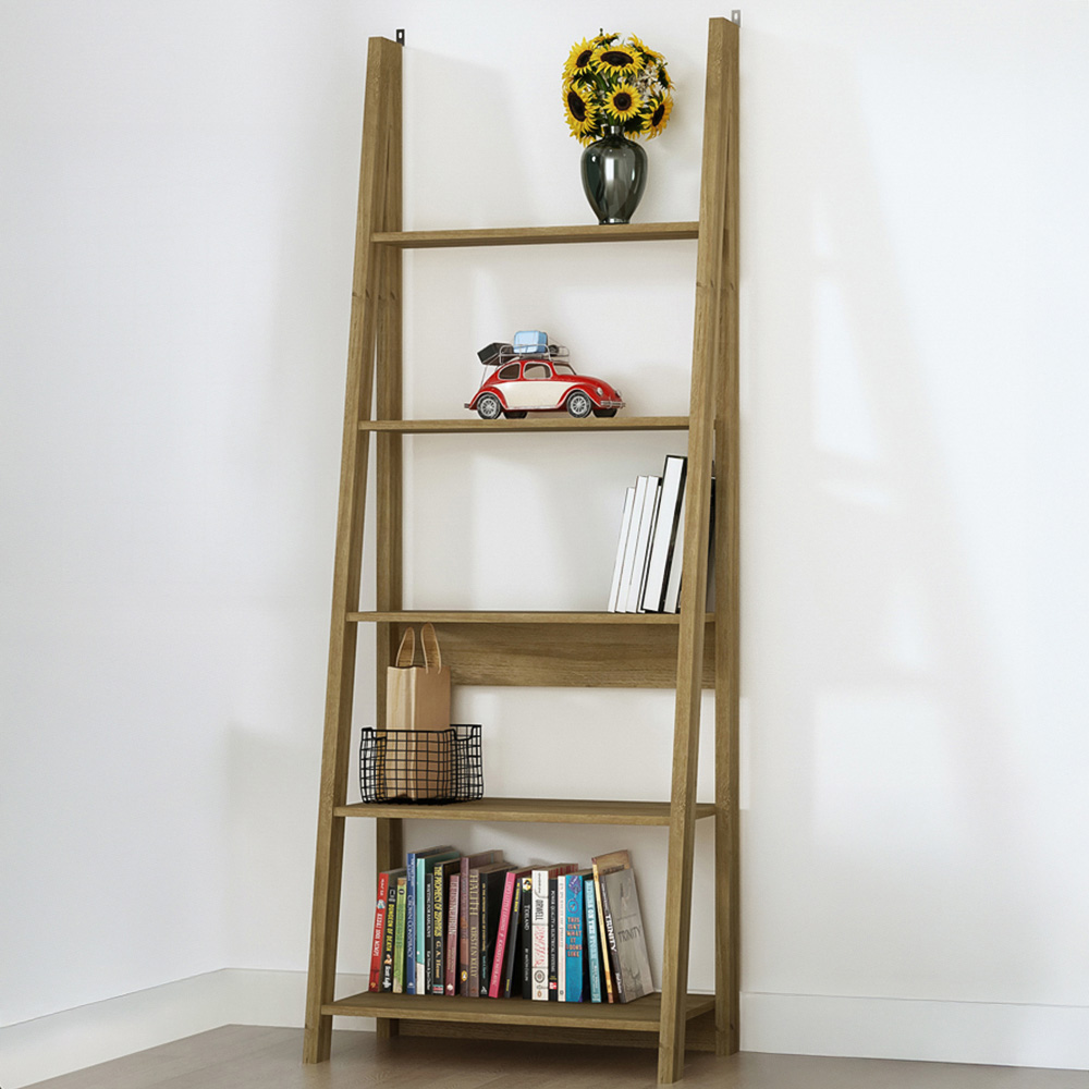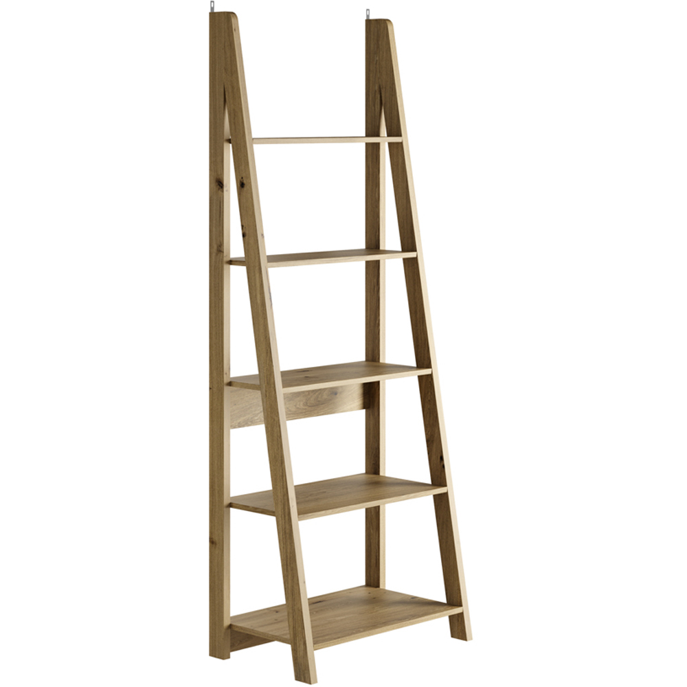 Introduce a touch of refined style to your living space with the Tiva 5 Shelf Oak Ladder Bookcase. This sleek unit, finished in a beautiful oak finish, provides a modern storage solution with minimalist elegance. The clean, leaning ladder design offers a unique and aesthetically pleasing display for your books, decorative items, or media, while maximising space in both small and large rooms. With five well-spaced shelves providing ample space, the Tiva bookcase is a versatile piece, perfect for adding a contemporary touch to any home and a practical storage option.