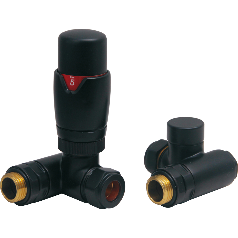 Towelrads Black Dual Fuel TRV and Lockshield Set 15mm x 1/2inch