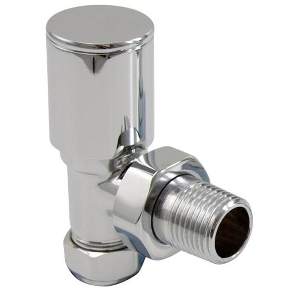 Complete your towel radiator installation with this pair of stylish chrome valves. Designed for seamless integration, these 15mm x 1/2in angled valves offer a precise, leak-free performance. Their compression connexions ensure a secure fit, while the reliable shut-off mechanism provides accurate water flow control. This two-pack guarantees a professional finish.