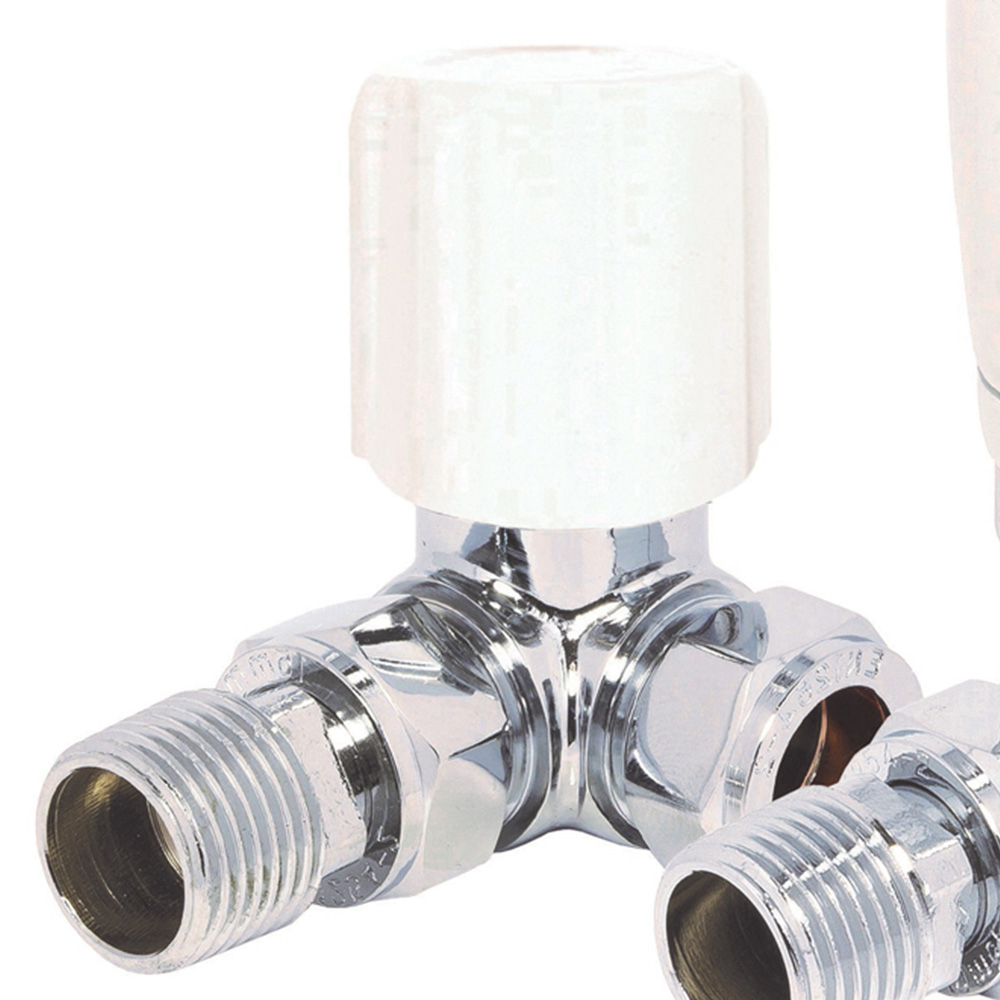 Towelrads White Corner TRV and Lockshield Set 15mm x 1/2inch