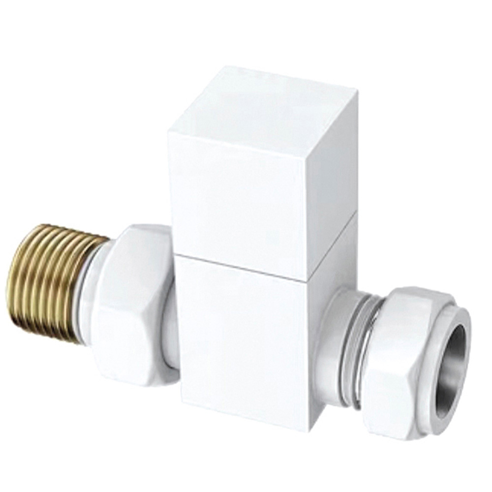 Complete your contemporary bathroom suite with this pair of sleek, white square radiator valves. Designed to complement square-tube towel radiators and bathroom fittings, these 15mm x 1/2 inch valves provide a seamless, stylish finish. The straight valve design ensures a clean, uncluttered look. A perfect match for your existing heating system.