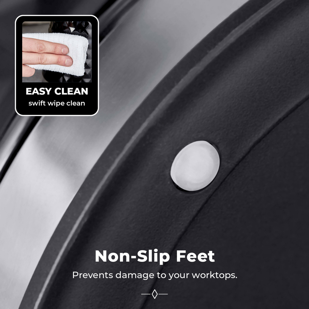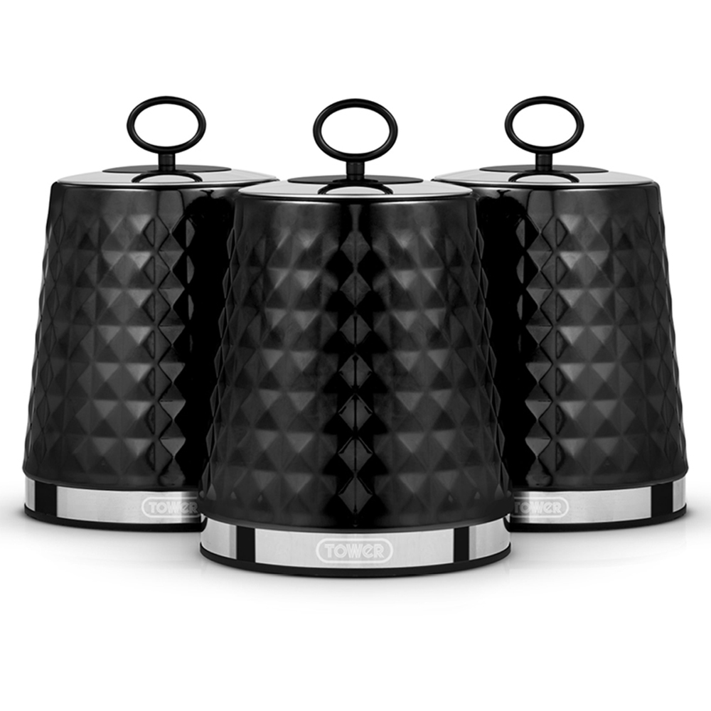 Enhance your kitchen's aesthetic with this stylish three-piece canister set from the Solitaire collection. The sleek, black-coated stainless steel construction offers both durability and a modern look. Each canister boasts a generous 1.3L capacity, minimising the need for frequent refills. The easy-access loop lids provide convenient access to your tea, coffee, sugar, and other ingredients. Built to last, these canisters are easily cleaned with a quick wipe, maintaining their pristine finish. Non-slip feet protect your countertops from scratches and damage.