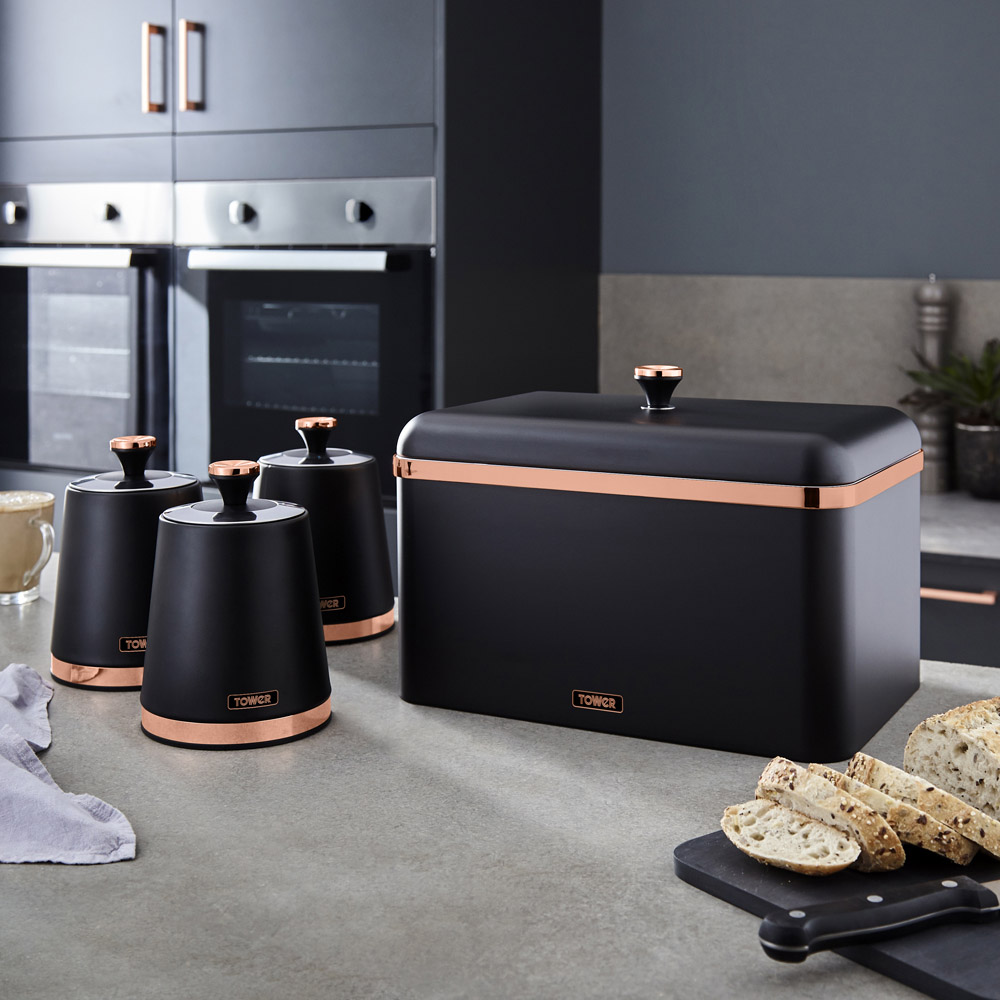 Enhance your kitchen's style and functionality with the Cavaletto three-piece Canister Set. Crafted from durable carbon with a matte black and rose gold finish, this set offers a sophisticated storage solution for your teas, coffees, and sugars. The 1.3L capacity of each canister ensures ample space, while the removable lids provide easy access to your ingredients. Maintaining its sleek look is effortless—simply wipe clean. Keep your ingredients fresh and your countertop organised with this stylish and practical set.