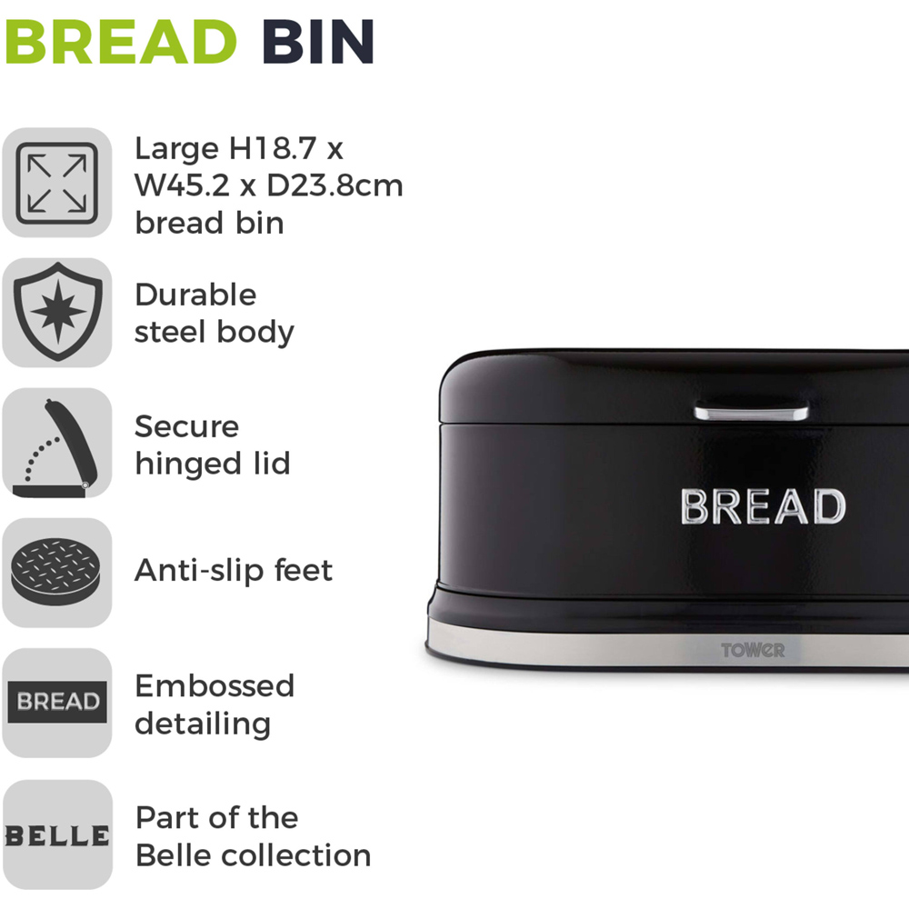 Tower Renaissance 16L Grey and Chrome Bread Bin