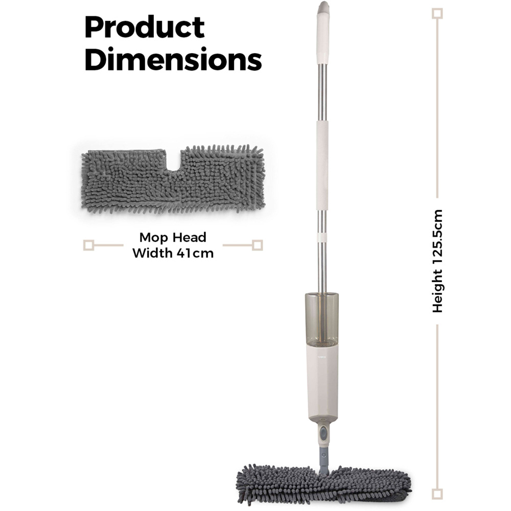 Effortlessly clean your floors with the Classic White Spray Mop. Its 450ml anti-leak tank holds your preferred cleaning solution, ready for quick and easy application. The convenient trigger spray allows for precise dispensing while mopping, ensuring efficient cleaning. The pivoting mop head navigates furniture with ease, reaching even hard-to-clean spots. Durable construction and a one-year warranty guarantee lasting performance.