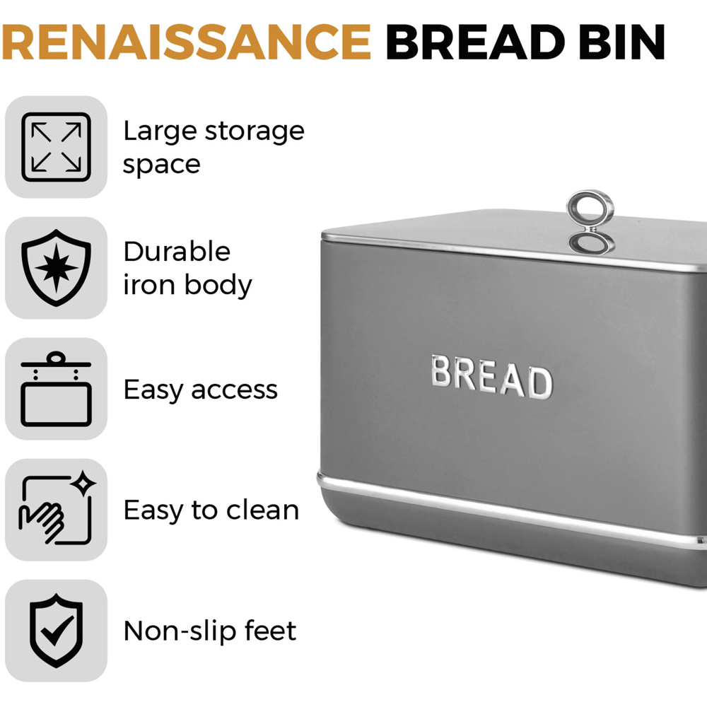 Tower Renaissance 16L Grey and Chrome Bread Bin