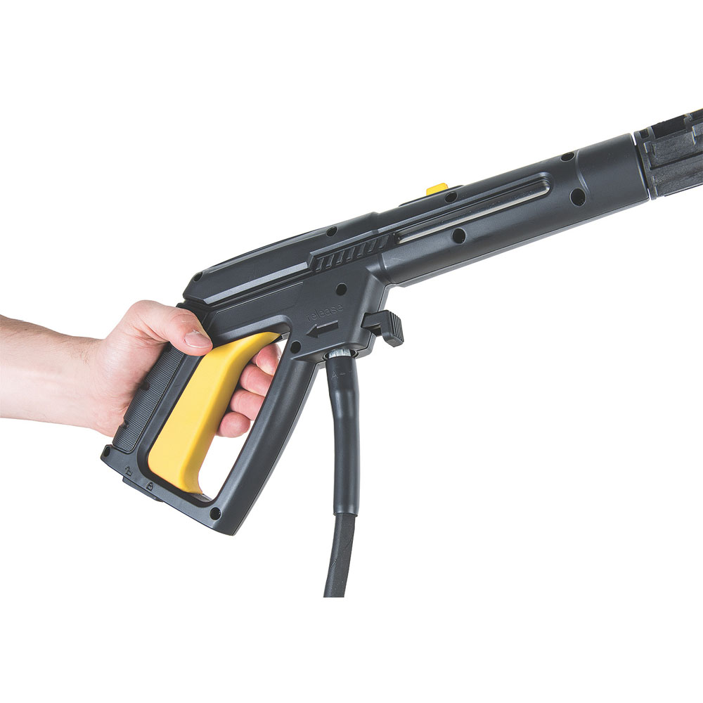 Effortlessly tackle your cleaning chores with this Tramontina high-pressure washer. Boasting a powerful 1200W motor and 1500 psi pressure, it delivers a superior clean. The adjustable spray nozzle offers both straight jet and fan spray options for versatile cleaning, while the 3m high-pressure hose provides ample reach. Compact and lightweight at just 6kg, its dimensions are 28 x 27 x 45cm. Enjoy significant water savings of up to 80% with this efficient machine. Multiple accessories are included for diverse cleaning needs. Power: 1200W/220V.