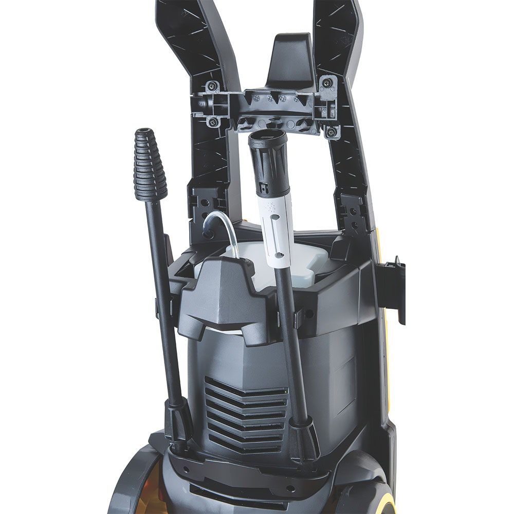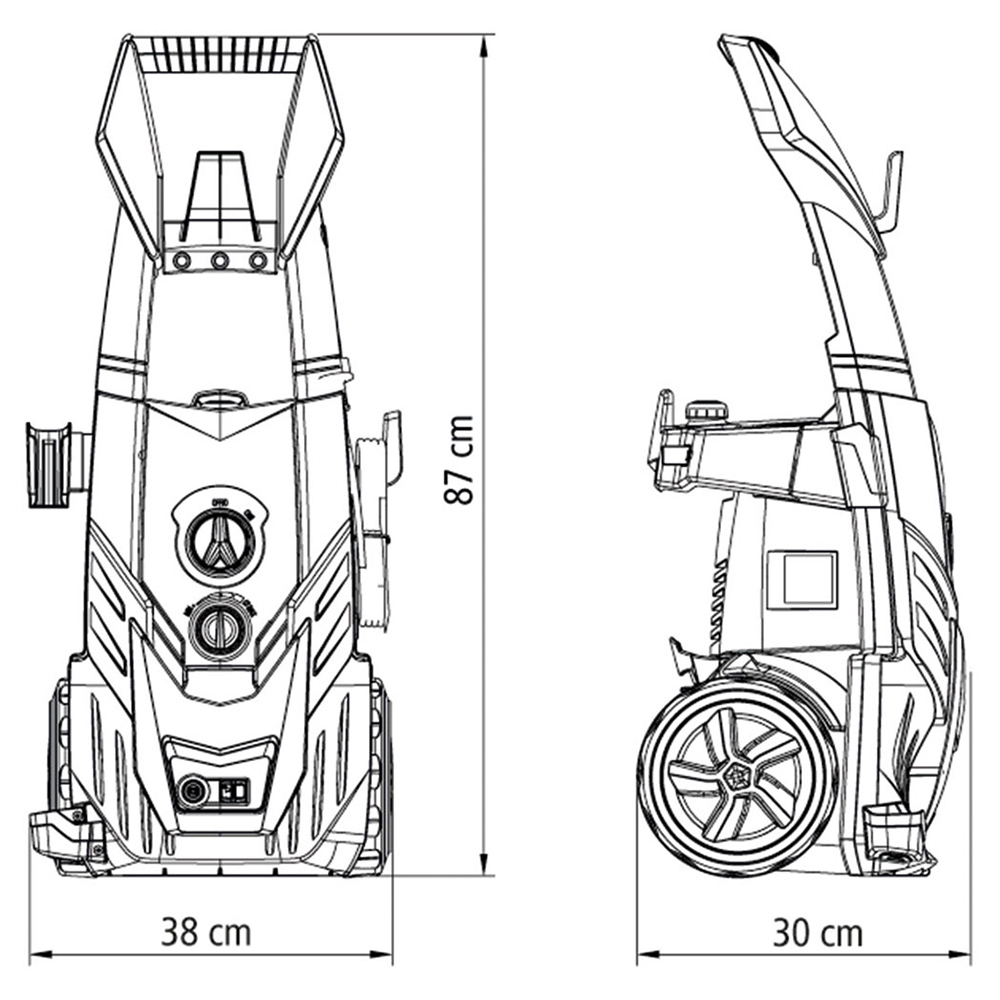Effortlessly clean with this powerful pressure washer. Boasting 2100W of power and 2100psi of pressure, it delivers a water flow of 440 l/h, saving you up to 80% water compared to a traditional hose. Adjust the nozzle for a straight jet or fan spray to suit your cleaning needs. The 5m high-pressure hose provides excellent reach, and convenient accessories are included. Dimensions: 38 x 30 x 87cm (H). Weight: 20kg. Power: 2100W/127V.