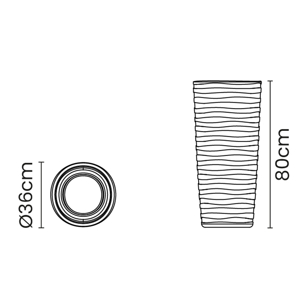 The Tramontina Graphite Grego Planter is a stylish and practical addition to any home, inside or out. Standing 80cm tall, this planter',s classic conical shape and textured surface make a bold statement. Made from durable, rotomolded polyethene, it',s weatherproof and resistant to sun and rain damage. With a 56l volume and 33kg capacity, you can fill it directly with soil or use it with a plant pot, drainage holes ensure healthy plant growth.