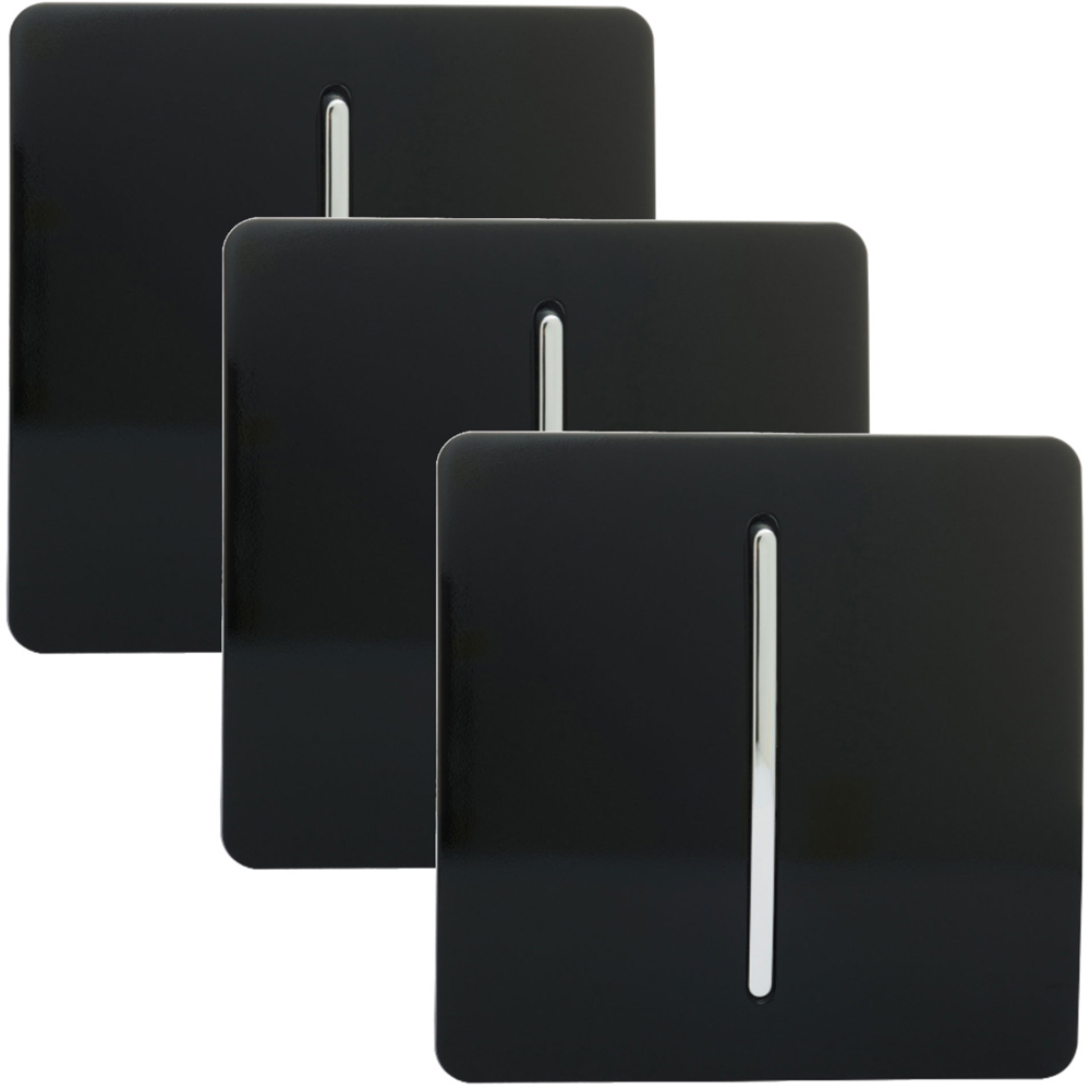 Trendi Switch 1 Gang 1 or 2 Way Piano Black Rocker Light Switch 3 Pack