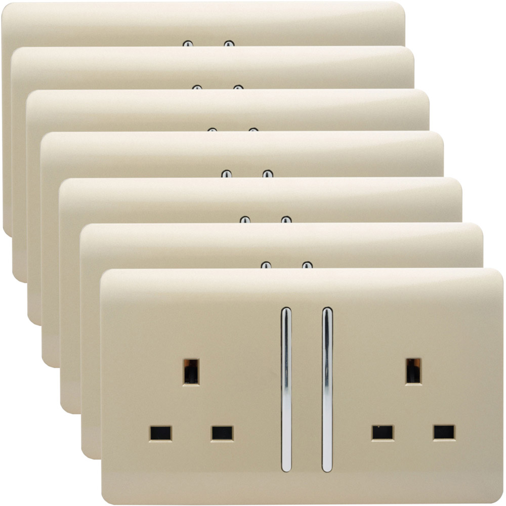 Trendi Switch 2 Gang 13A Champagne Gold Long Switched Socket 7 Pack