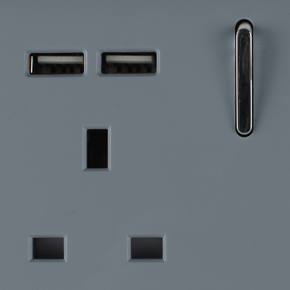 Trendi Switch 2 Gang 13amp 4 Port USB Warm Grey Plug Socket