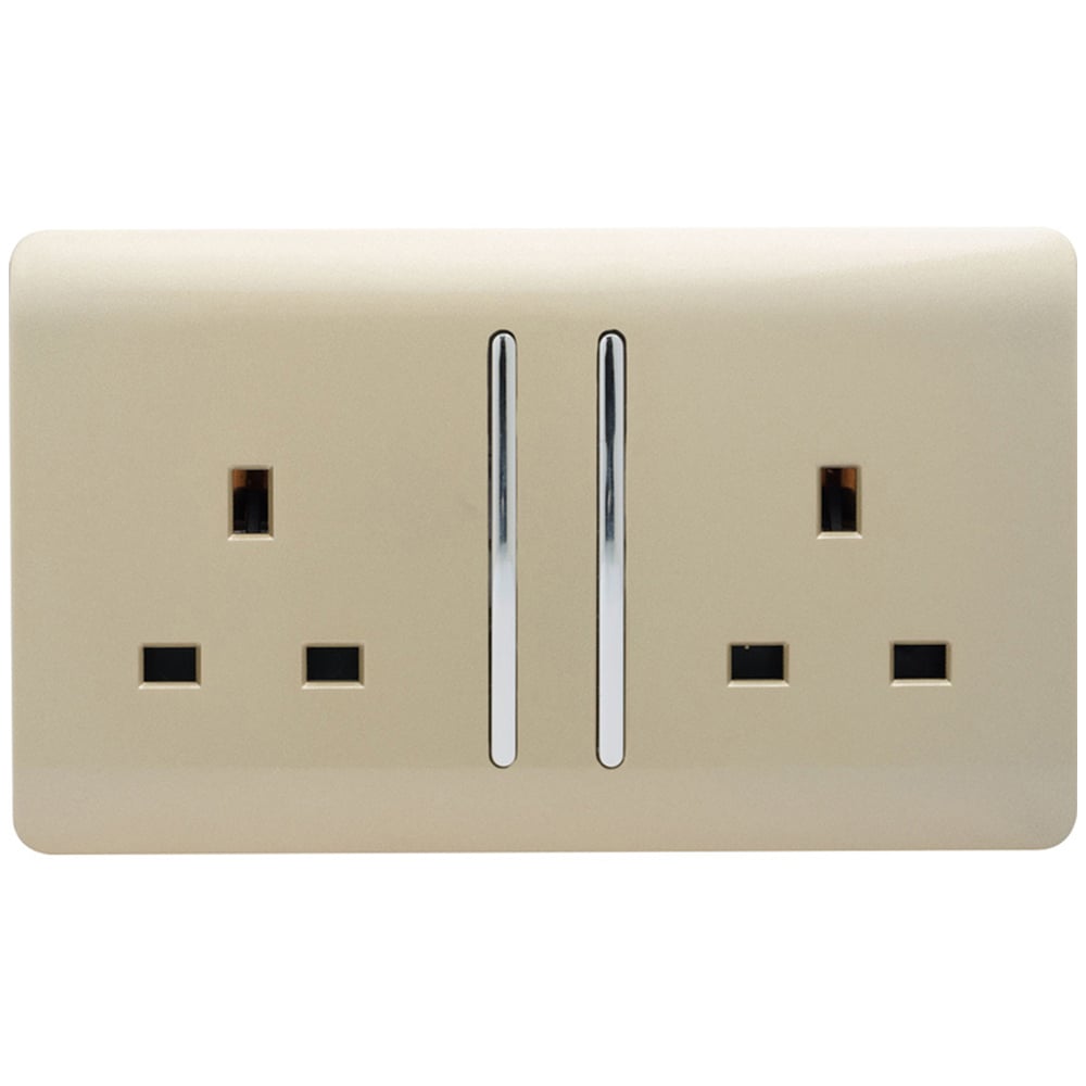 Trendi Switch 2 Gang 13amp Champagne Gold Long Switched Plug Socket