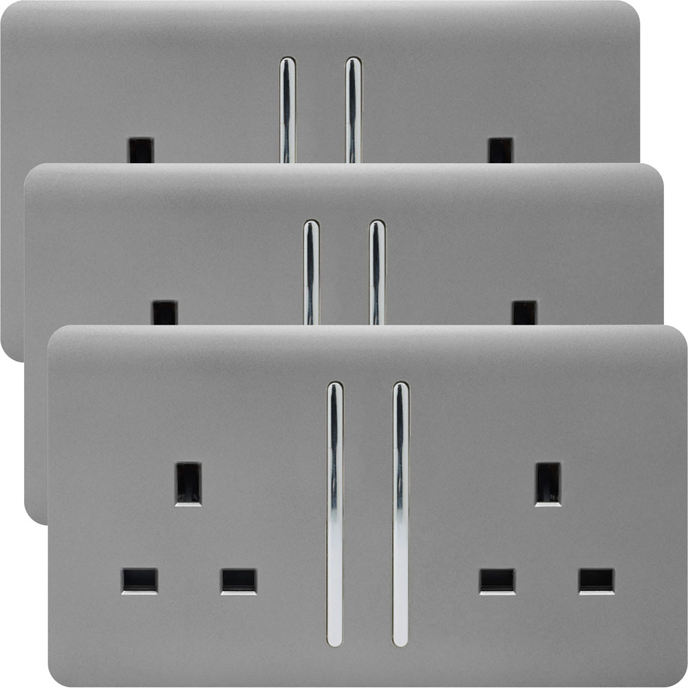 Trendi Switch 2 Gang Light Grey Long Switched Plug Socket 3 Pack