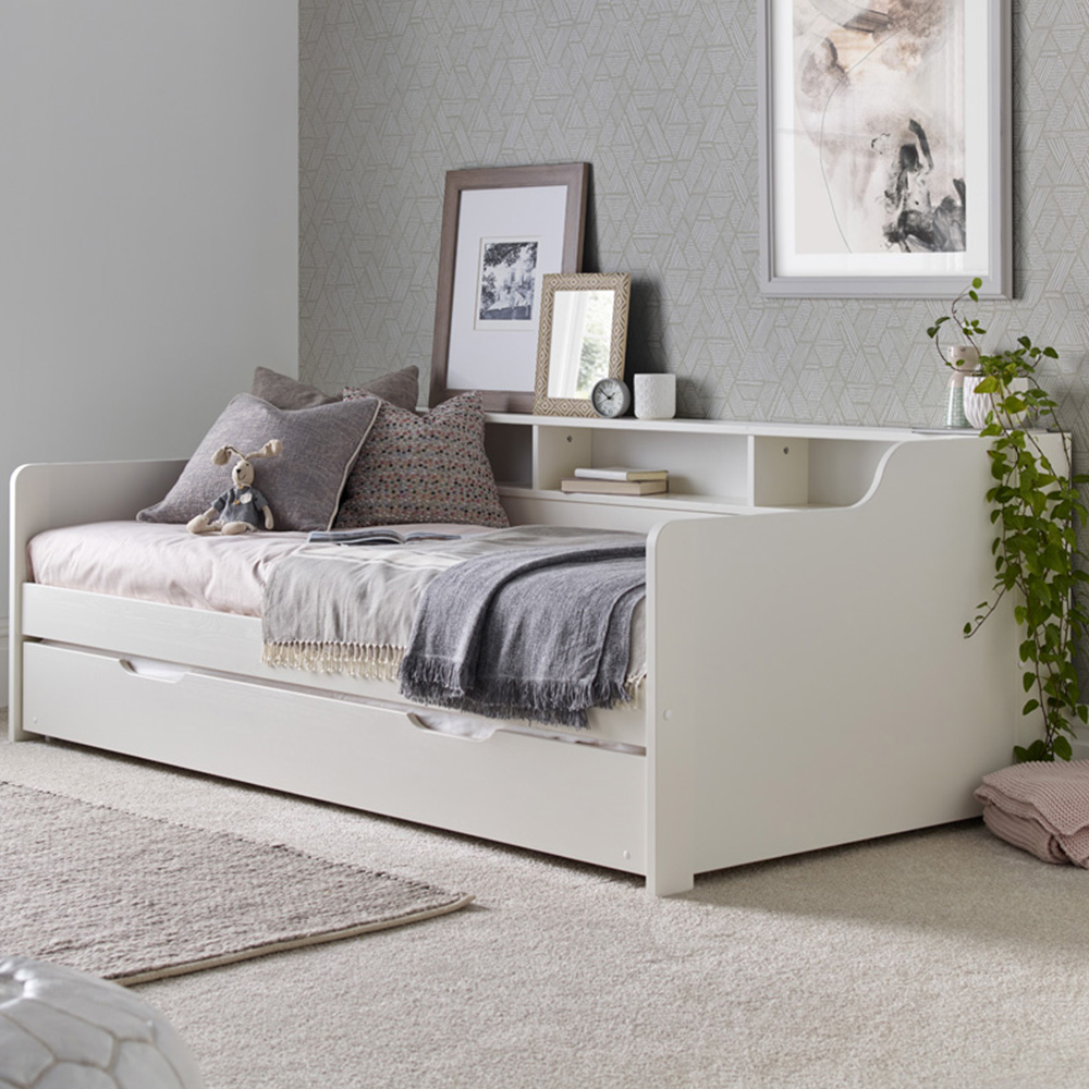 Create extra space without compromising on style with the Tyler single bed and convenient trundle. This bed, finished in a smart grey, presents a simple yet appealing design ideal for bedrooms or accommodating overnight guests. Constructed from solid pine, it boasts wooden slats to reliably support your mattress for years to come.
