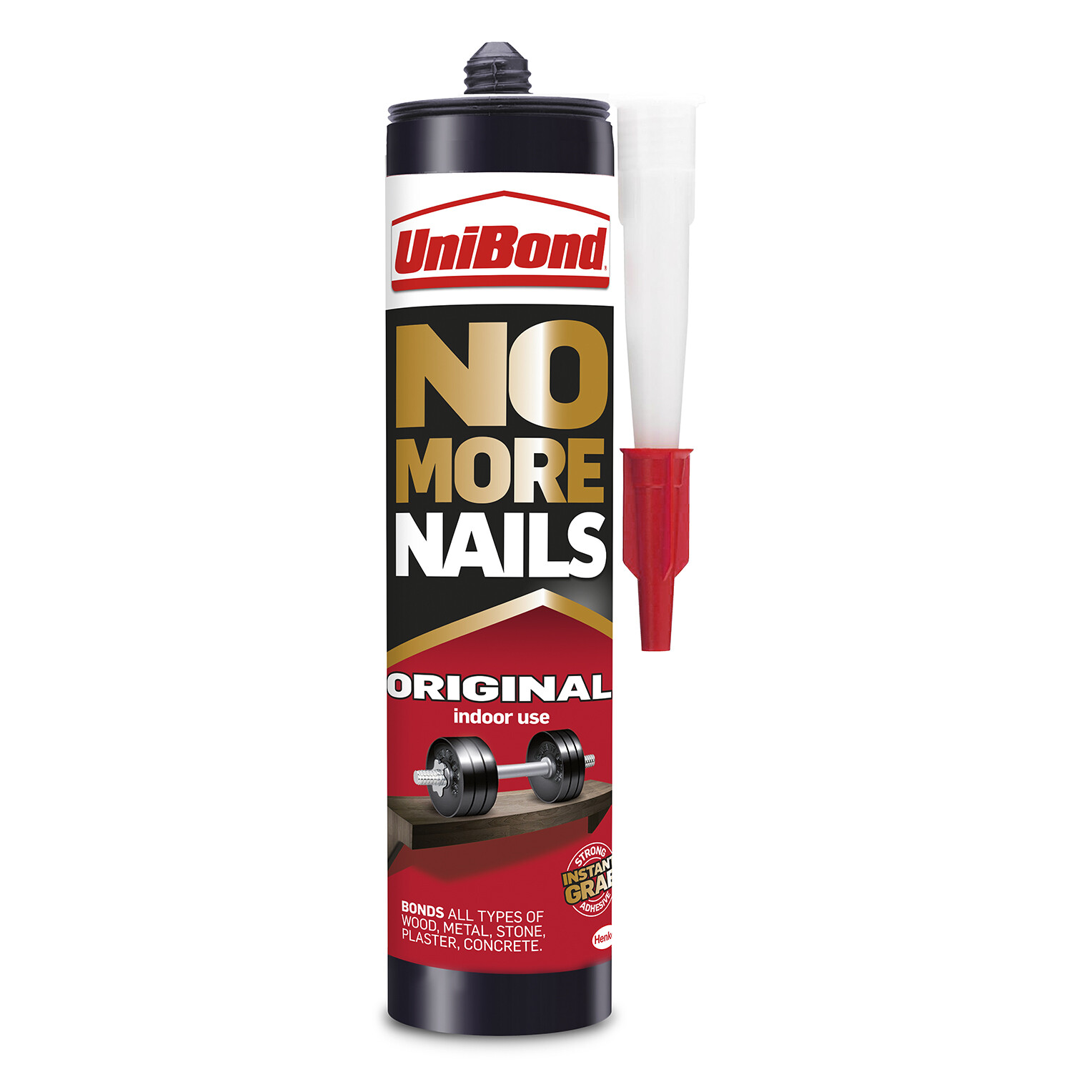 UniBond No More Nails Original – Say goodbye to nails and screws! Tired of hammering and screwing during DIY projects? UniBond No More Nails Original construction adhesive delivers heavy-duty bonding power without the hassle. This mounting adhesive utilizes water-based copolymer technology for superior strength and a professional finish. Its cartridge design provides controlled application via a cartridge gun. Suitable for most common building materials – wood, ceramic, metal, concrete, brick, plaster, stone, and most plastics – this grab adhesive excels at interior heavy-duty repairs and DIY tasks. Ideal for skirting boards, coat hooks, window ledges, and coving. For best results, ensure surfaces are clean and free of dust, oil, grease, and loose material. One surface must be porous, as the adhesive dries via water evaporation. Cut the cartridge tip above the screw thread, attach the nozzle (cutting to size), insert the cartridge into the gun, and apply adhesive in 15cm-apart beads to one surface. Firmly press the surfaces together with a twisting motion. Wipe away excess adhesive with water. Allow 24-48 hours for complete drying. Very heavy or oddly shaped items may require support during drying.