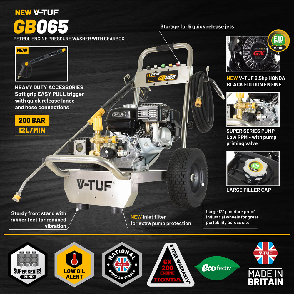 V-TUF GB065 6.5HP Honda Pressure Washer with Gearbox Pump 200Bar