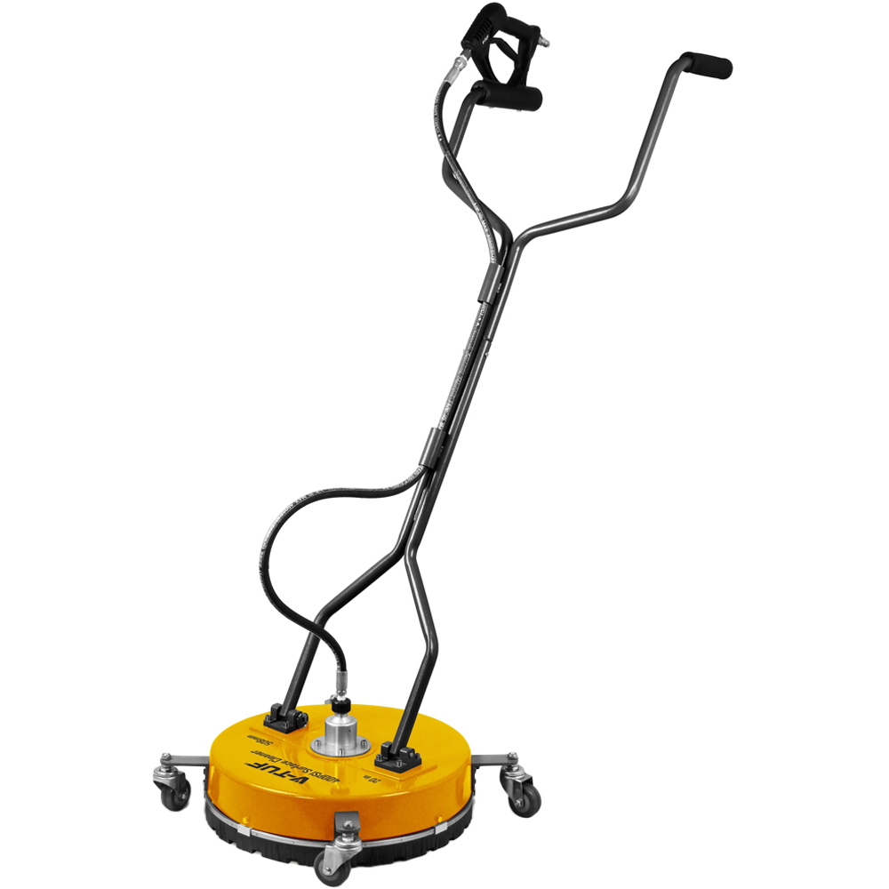 Effortless and efficient cleaning is at your fingertips with the V-TUF H1.006 Surface Cleaner. This heavy-duty unit boasts a 480mm (19",) cleaning path and four robust castors for easy manoeuvrability. The innovative V-SPIN high-speed swivel and twin-jet deep clean spindle deliver impressive, fast, splash-free cleaning, ensuring a safe and effective operation. Its impact-resistant housing prevents denting, while the sealed swivel keeps dirt and grit from contaminating the system. The DuraKLIX MSQ 3/8",M (to 3/8",F) inlet ensures compatibility with a wide range of hot and cold industrial pressure washers, including the V-TUF TORRENT (Petrol, Diesel) and DD, GB, and RAPID (Electric) ranges. This highly corrosion-resistant cleaner (all metal is galvanised before painting) is ideal for diverse applications. Suitable for cleaning a wide range of surfaces and equipment, the H1.006 offers unparalleled versatility. Please note: specifications may be subject to change due to ongoing product development, and images are for illustrative purposes only. Common wearing parts include VT85790030 Castor Wheel and T1.050 Trigger.