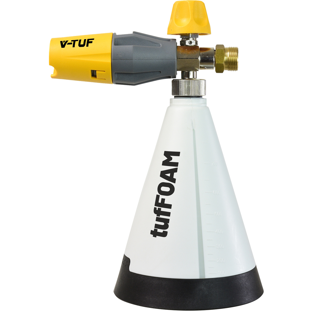 This V-TUF Foam Cannon delivers instant foam, directly to the surface, eliminating the delay of detergent travelling down a long hose. Its clever design ensures even detergent distribution and extended dwell time, allowing for more effective cleaning and easier identification of missed spots. Compatible with the Torrent range and models VTUF110, VTUF240, DD055, DD080, DD130, GB080, GB110, and GB130, this foam cannon is a perfect partner for the V-TUF VTC120 and VTC620, maximising cleaning power and efficiency.