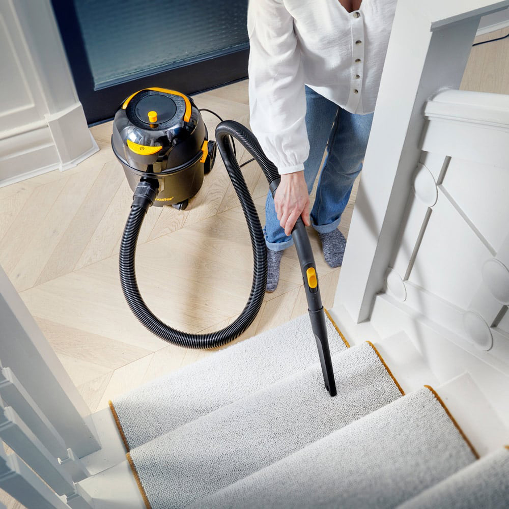 Effortlessly conquer cleaning tasks with the Vacmaster D8 cylinder vacuum. This robust machine delivers professional-grade performance for both home and business use, handling everything from fine dust to heavier debris. The powerful 200-air-watt motor provides exceptional suction across carpets and hard floors, while the large 8L capacity minimizes emptying. A 26m reach ensures you cover wide areas with ease. Experience ultra-quiet operation, perfect for any environment. The advanced four-stage filtration system, featuring washable HEPA 13 filters, traps 99.9% of fine dust and allergens, collecting them in a self-sealing bag for mess-free disposal. The included round dusting brush and crevice tool conveniently store on the vacuum for compact storage. Weighing just 6.6kg, this vacuum is incredibly portable. The WesselWerk all-floor nozzle is included. Replacement parts, bags, and accessories are readily available. Enjoy peace of mind with a two-year manufacturer's guarantee.
