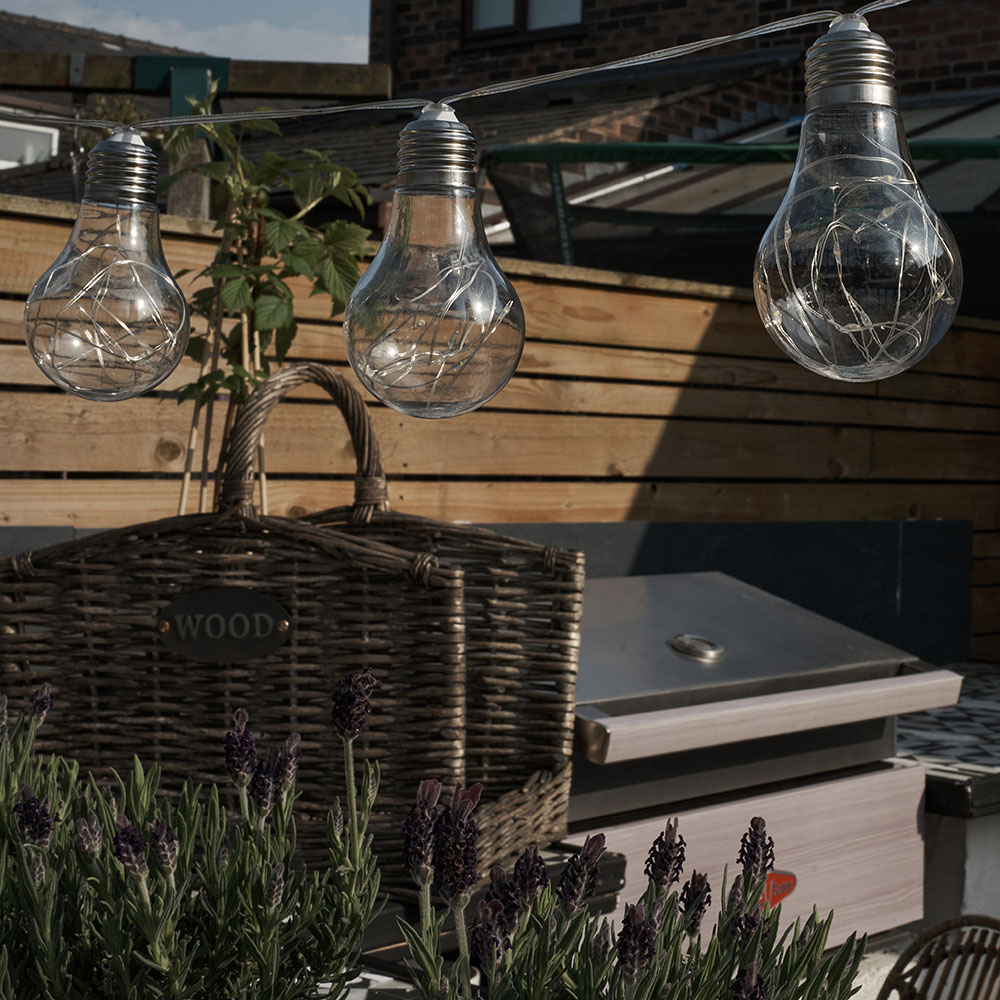 Transform your space with the 10-Bulb Chrome Festoon Warm White LED String Light. Delicate bulbs with brushed chrome caps house 10 fairy lights each, creating a captivating display. Safe for indoor and outdoor use (IP44 rated), these lights are perfect for enhancing trees, shrubs, or gardens. The warm white LEDs produce a welcoming glow, adding ambiance to any setting. Measuring 6m long with bulbs spaced 30cm apart, these battery-operated lights offer flexible placement. Conveniently located 30cm from the first bulb, the battery box requires three AA batteries for effortless illumination. A versatile and thoughtful gift, perfect for year-round enjoyment.