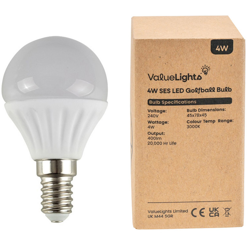 ValueLights 10 Pack E14 4W Warm White Golfball LED Light Bulb