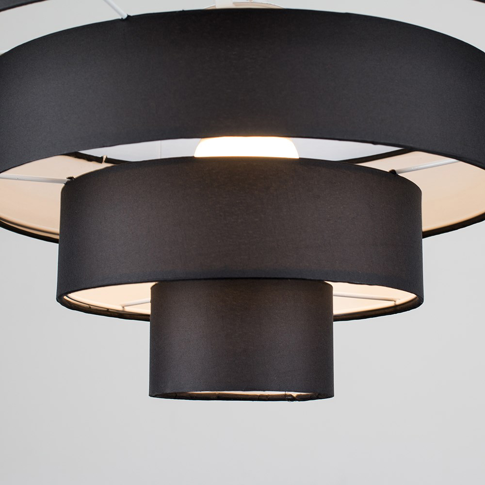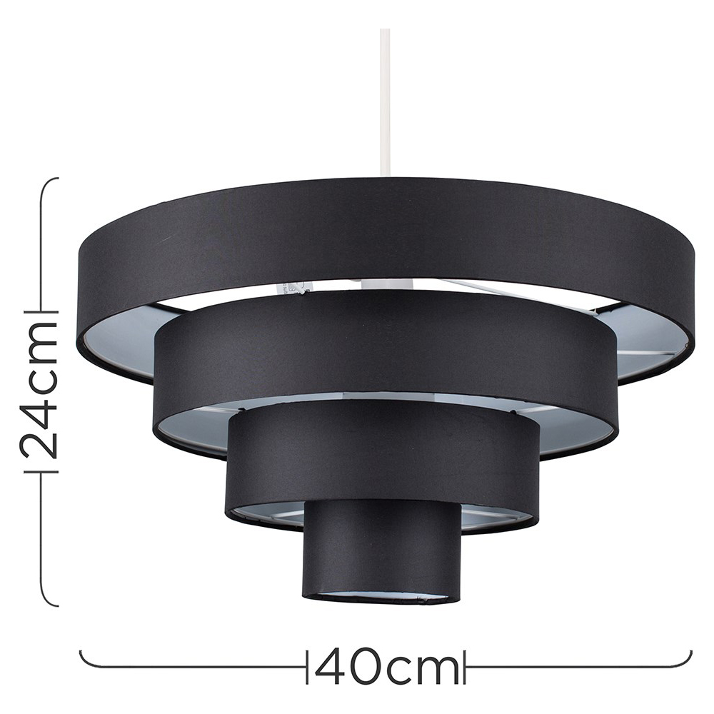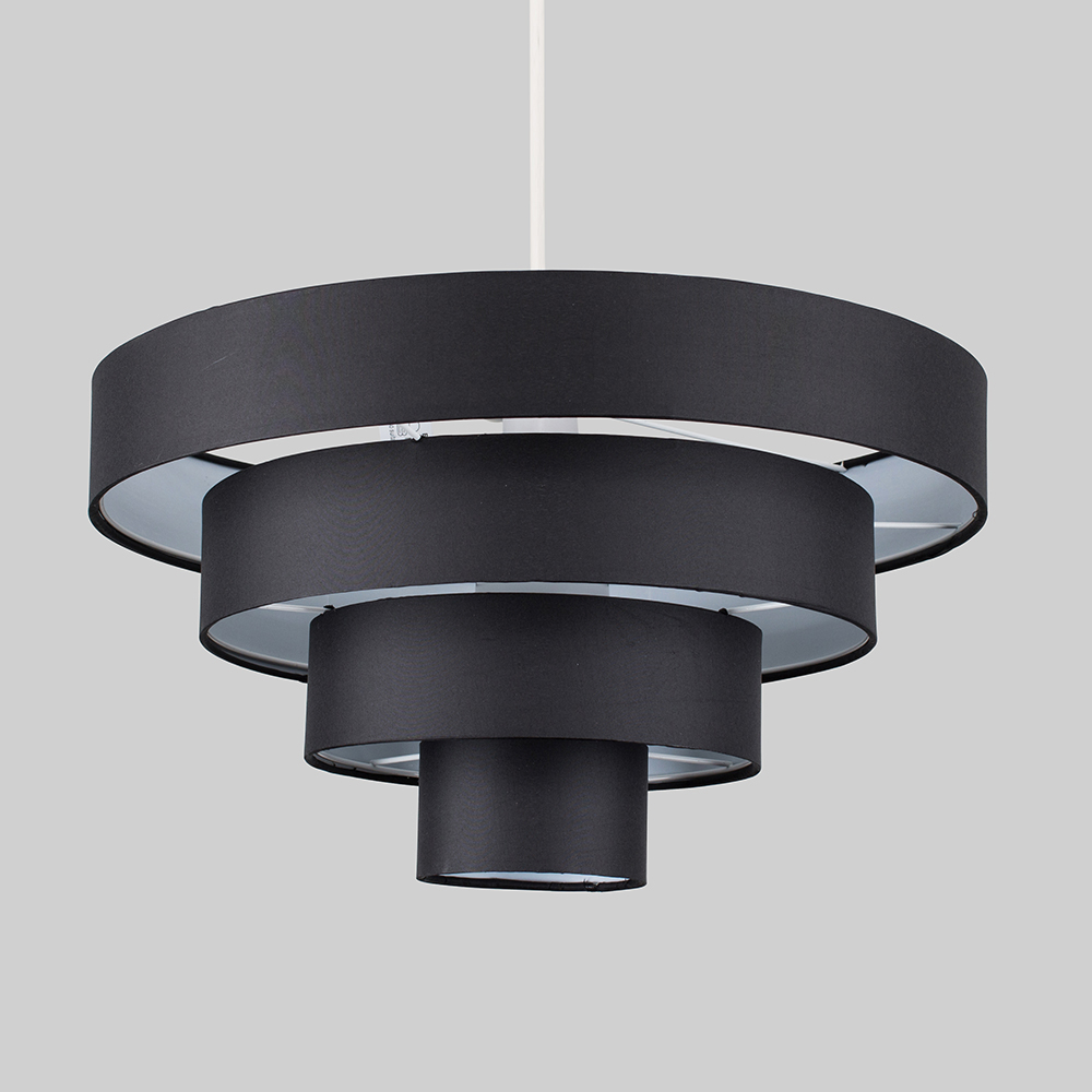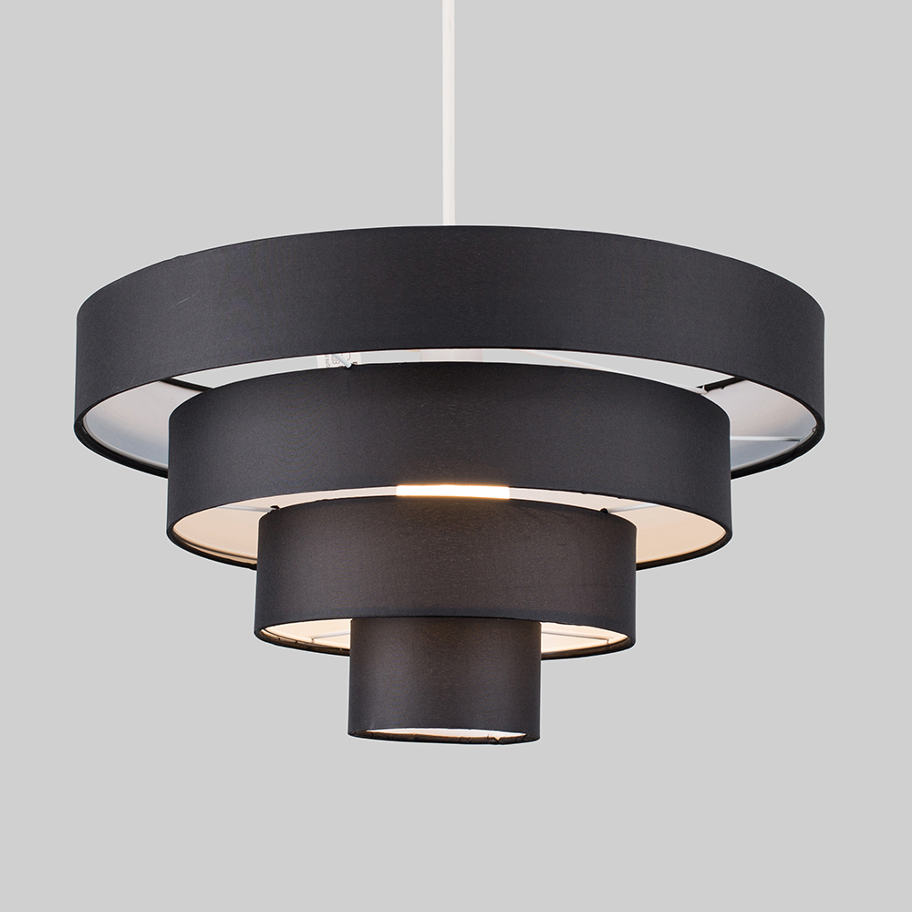 This four-tier ceiling pendant lamp shade adds effortless sophistication to any room. The sleek black fabric shade ensures even light dispersion, while its simple design allows for direct attachment to your existing ceiling rose, eliminating the need for any electrical installation.