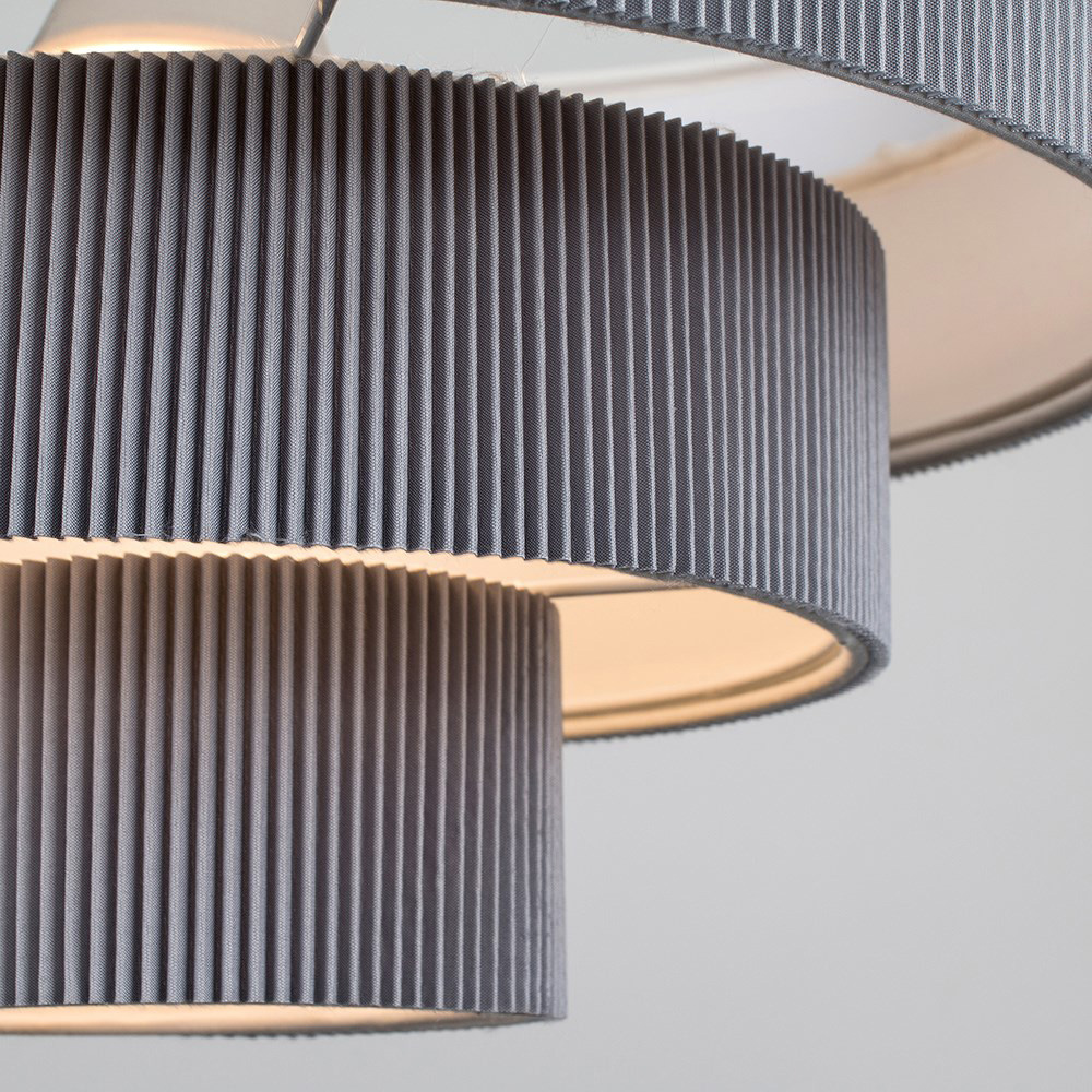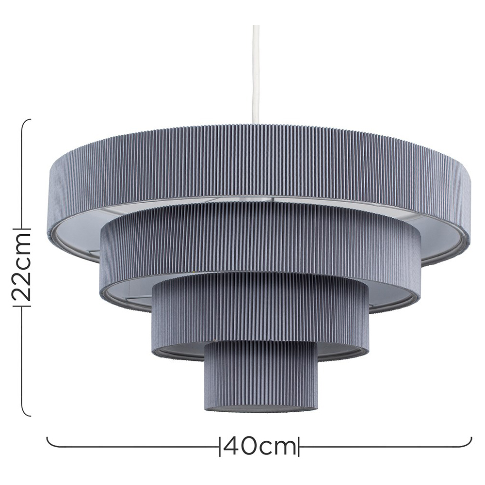 Transform your living space with the ValueLights 4-Tier Dark Grey Fabric Ceiling Pendant Lamp Shade. This stylish lamp shade, with its pleated grey fabric, ensures even light distribution, perfect for brightening lounges, dining rooms, bedrooms, and hallways. Best of all, it's easy to install, simply attach it to your existing ceiling rose—no electrical work required.