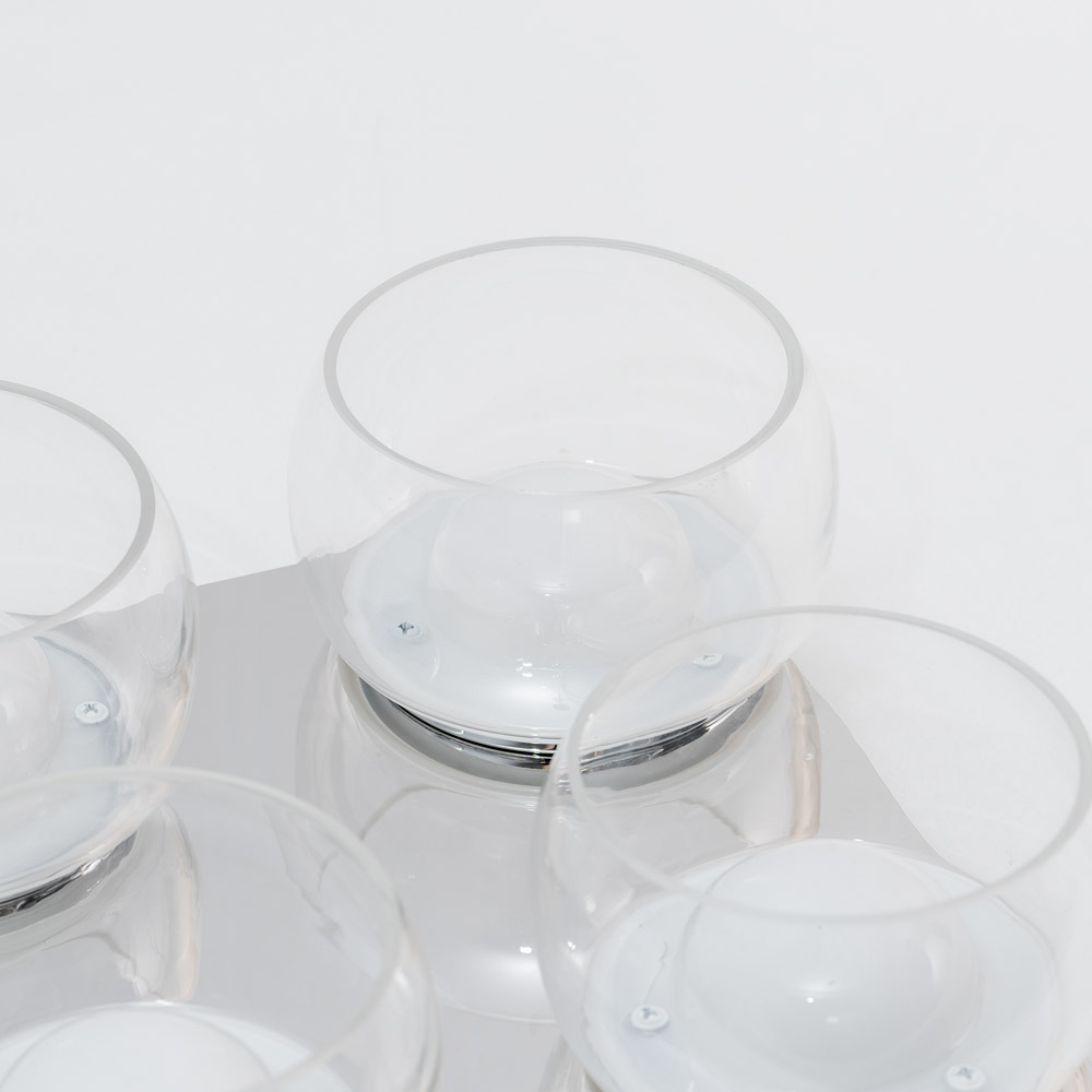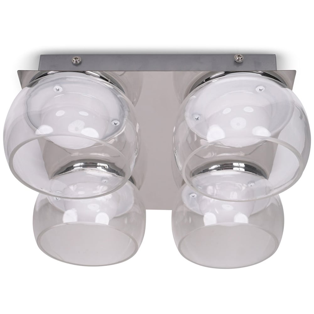 This four-way ceiling light fitting adds a modern touch to any living room, bedroom, or bathroom. Its striking metal frame and elegant glass shades create a stylish focal point. Integrated warm white LED bulbs provide a soft, inviting ambiance. Choose from a matt black finish with smoked glass, chrome with clear glass, or matt gold with clear glass.