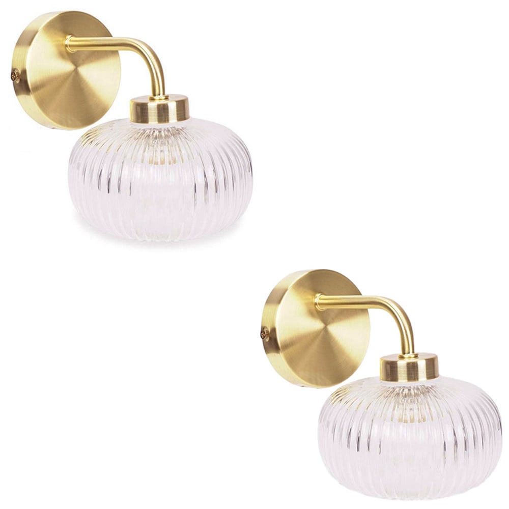 ValueLights Amaia Gold Clear Ribbed Glass LED Wall Light 2 Pack