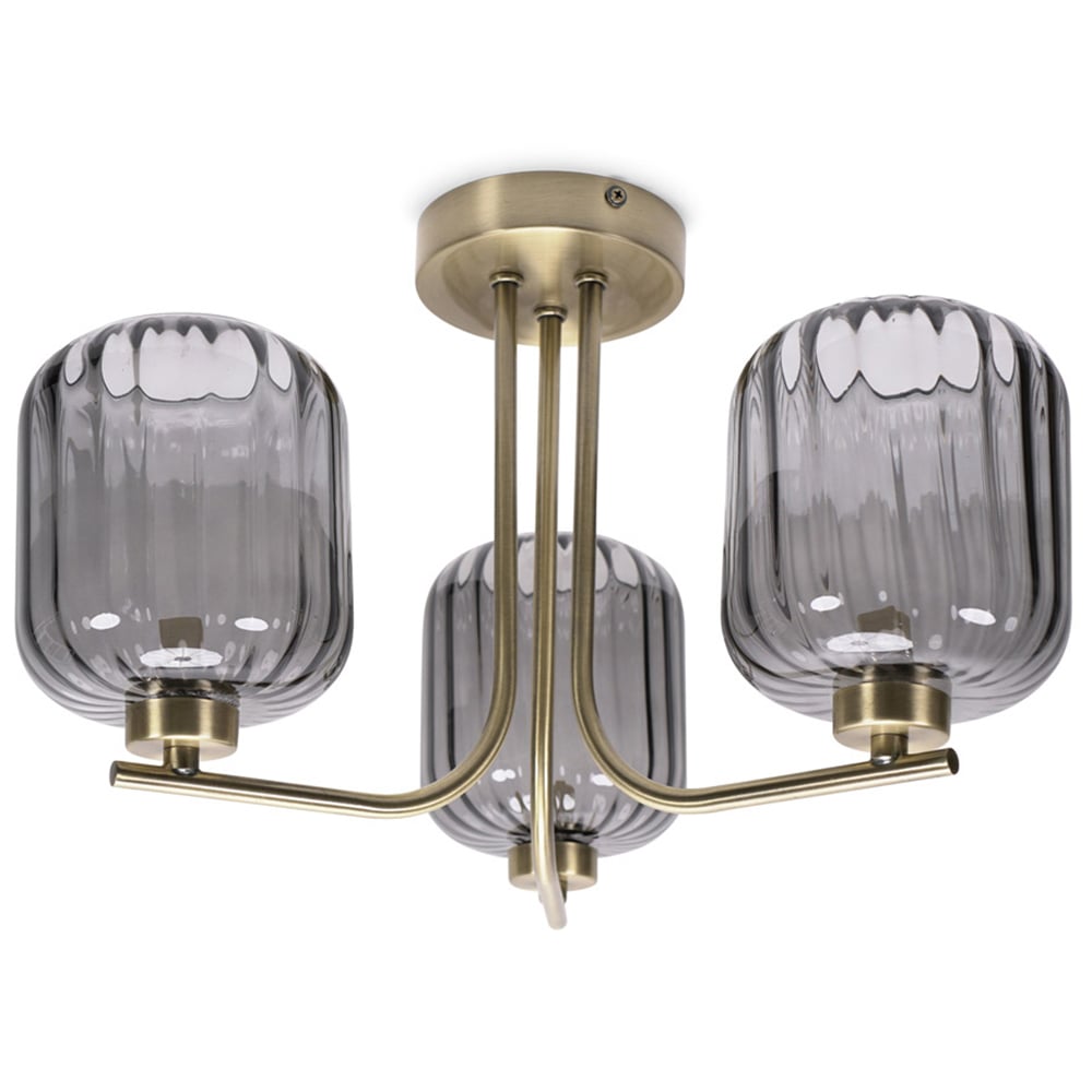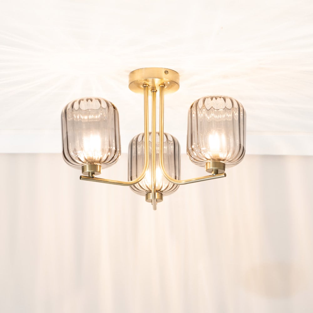 Illuminate your home with the Amelie 3-Way Ribbed Glass Gold Stem LED Ceiling Pendant Light. Its elegant design features tinted ribbed glass and gold stems, adding a touch of subtle colour to your space. Included LED bulbs brighten your interior, while the sleek finish allows for easy cleaning with a dry cloth. Enjoy peace of mind with its one-year warranty.