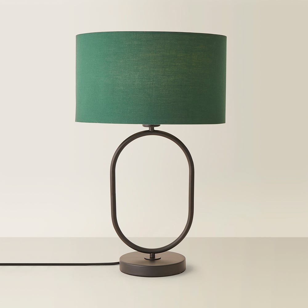 This stylish Antonia Forest Green Drum Lamp Shade Matte Black Oval Table Lamp brings a touch of Art Deco elegance to your home. The sleek, matte black oval base is paired with a rich green fabric drum shade, creating a bold statement piece that enhances any room's decor. Ready to use straight away, this lamp includes an energy-efficient LED bulb, offering both style and functionality. With its graceful lines and eye-catching design, the Antonia lamp is sure to be a focal point, providing ample illumination with a personal touch.