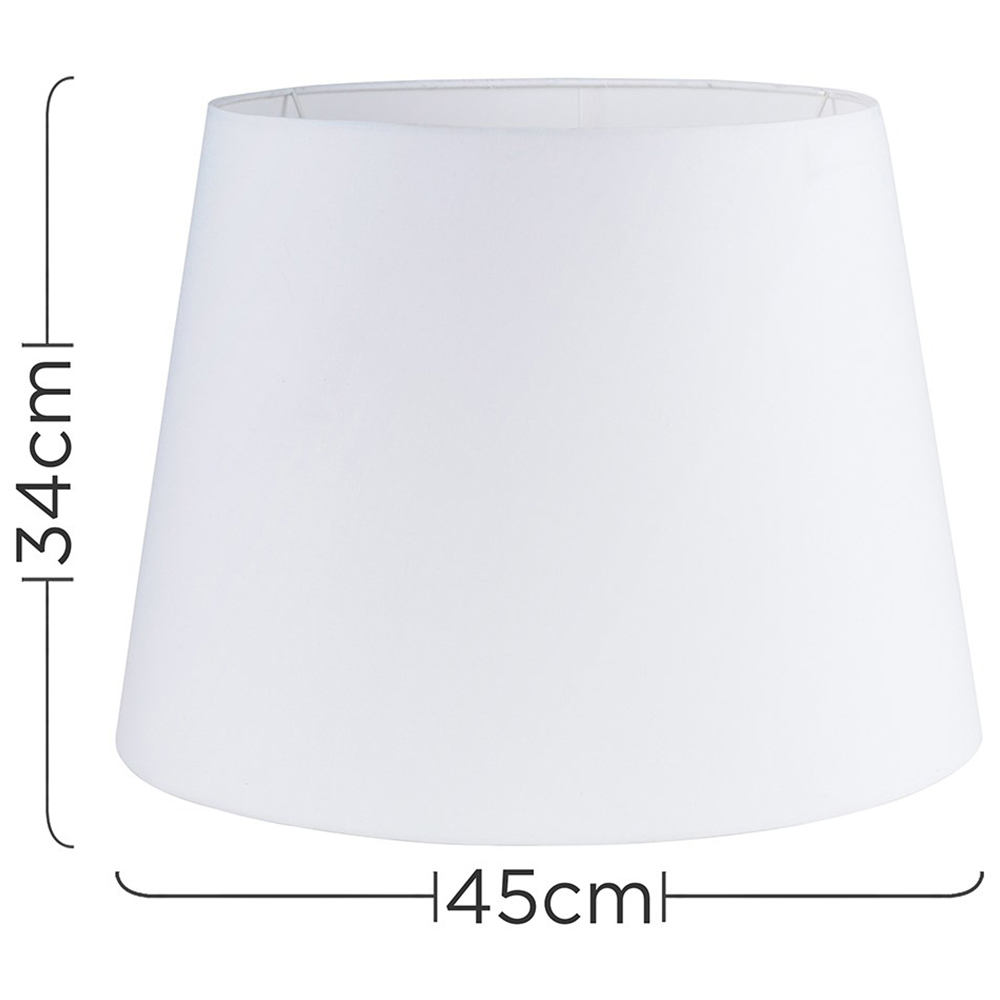 The Aspen White Tapered Lamp Shade XL adds effortless style to any room. Made from a luxurious polycotton blend in crisp white, this versatile shade complements any décor. Its tapered shape works perfectly as a floor lamp shade, table lamp shade, or even a ceiling fitting, creating the perfect ambience. Quick and easy to install, it simply attaches to a standard ceiling light socket—no wiring required. Dimensions: H27 x Dia35cm.