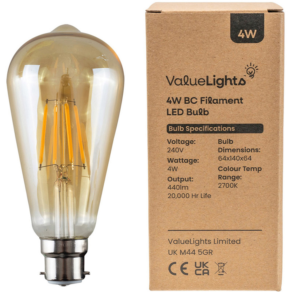 ValueLights B22 LED 2700K 4W Warm White Amber Pear Vintage Filament Bulb 5 Pack