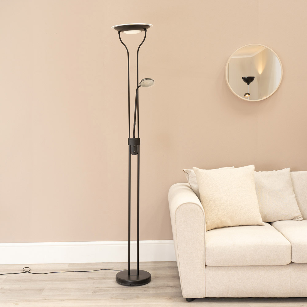 ValueLights Beata 2 Way Matte Black Dimmable LED Floor Lamp