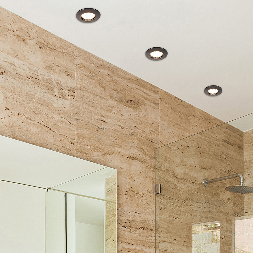 Elevate your interior with this stylish set of six GU10 recessed downlights. Available in black chrome, brushed chrome, copper, and chrome finishes, each light boasts a sleek design and effortless installation. The package includes a terminal block, GU10 lamp holder, and bracket, all secured with reliable metal spring clips. Direct mains wiring eliminates the need for a transformer, simplifying the fitting process. Detailed instructions are provided for a straightforward installation. Compatible with both halogen and LED GU10 bulbs, the set arrives complete with warm white bulbs. Each downlight measures 8.8cm x 8.8cm x 8.8cm.