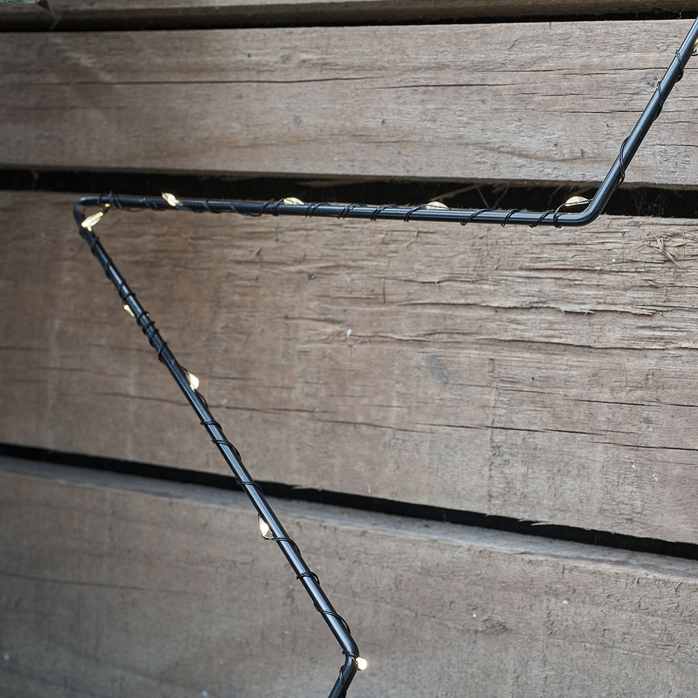 This stylish cordless LED garden star light adds a touch of modern charm to any setting. The sleek black finish complements the warm white LEDs, creating a welcoming ambiance. Perfect for gardens, homes, or events, its IP44 rating ensures suitability for outdoor use. Battery operated (3 x AA batteries required, not included), it offers versatile placement options for year-round decorative appeal.