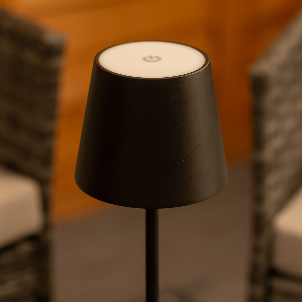 Enhance your indoor or outdoor ambiance with the sleek ValueLights Black Rechargeable Portable Outdoor Table Lamp. This cordless table lamp serves equally well as a reading light, bedside lamp, or decorative accent, offering ultimate placement flexibility. A built-in rechargeable battery and USB charging make it truly portable, activate and dim the light effortlessly via the touch-sensitive lampshade. Remember to recharge monthly for optimal battery performance.
