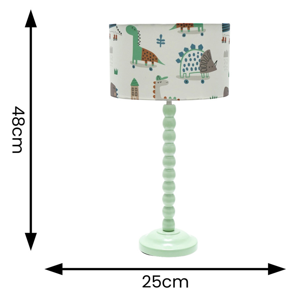 Bring whimsical style to your home with the Bobbins Cartoon Dino Sage Green LED Table Lamp. This versatile sage green lamp adds a touch of sweetness to any room, from nursery to dining room. Enjoy its soft illumination and the assurance of a 12-month warranty.