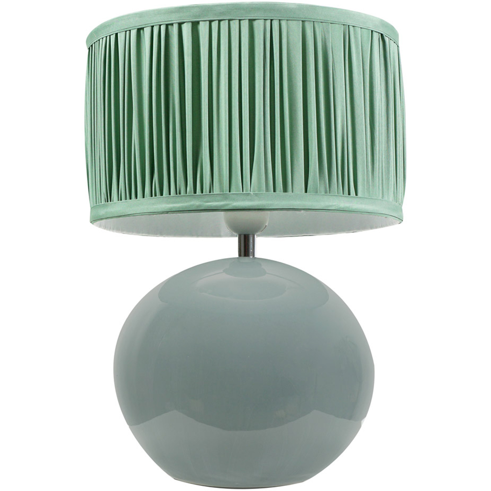 ValueLights Bosco Ruched Pleated Green Drum Shade Eucalyptus Ceramic LED Table Lamp