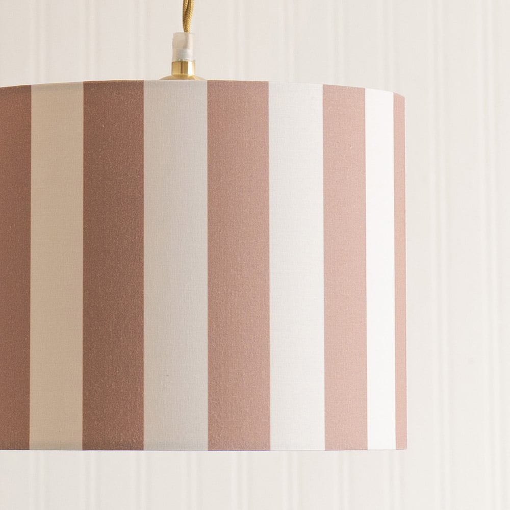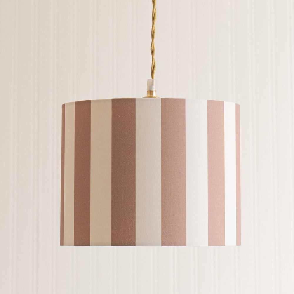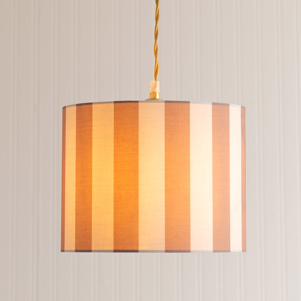 ValueLights Callie Colour Clash Natural and Brown Striped Fabric Drum Lamp Shade Small