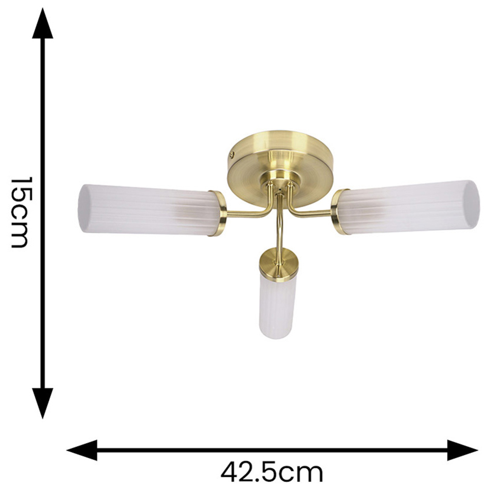 Elevate your home's style with this contemporary ceiling light. Crafted from metal with three reeded glass shades, its modern design complements various interiors. Perfect for bathrooms (zones 2 and 3), living rooms, dining rooms, hallways, and bedrooms, this fitting adds a touch of sophistication to any space. Dimensions: H14.5 x W33 x D33cm.