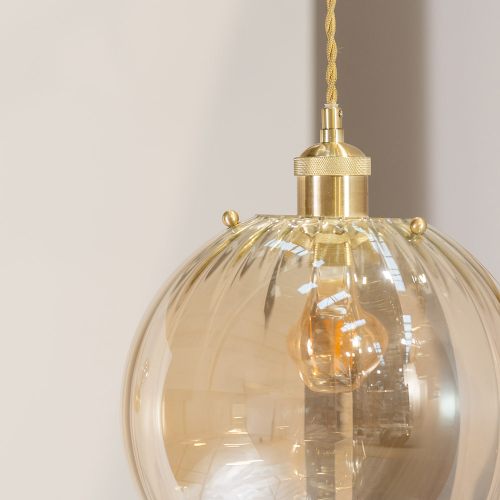 Illuminate your space with the Chessy Ribbed Glass Globe Pendant Shade. The warm amber glass and ribbed texture add understated elegance without feeling dated. This shade easily fits standard ceiling pendants, offering a simple yet stylish way to refresh any room. A brushed gold finish provides a modern touch, complementing various décor styles in living rooms, kitchens, or bedrooms. Enjoy a soft, warm glow and a subtle focal point. Cleaning is easy – just wipe with a dry cloth. Backed by a 12-month warranty.