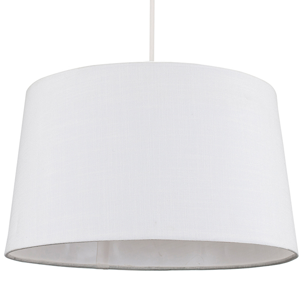 The Doretta White Tapered Lamp Shade adds a touch of modern elegance to your home. This versatile shade, crafted from luxurious faux linen, is equally at home as a ceiling pendant or table lamp shade. Installation is quick and easy, simply attach it to any standard ceiling light fitting – no wiring needed. Dimensions: H23 x Dia40cm.