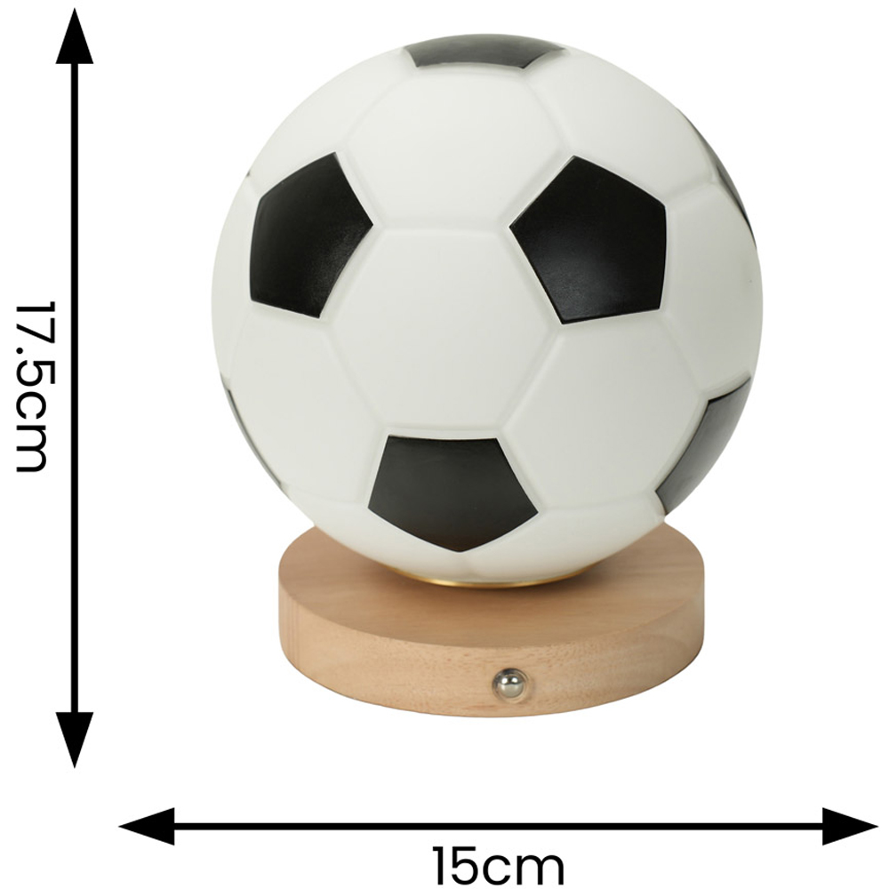 Illuminate your space with the Dougie, a rechargeable LED table lamp featuring a unique football shape and warm-toned wooden base. Integrated LEDs provide warm, ambient light, perfect for use as a nightlight, with smooth, stepless dimming for customizable brightness. USB rechargeable and ready to use. Dimensions: 18 x 15 x 15cm. Includes a 12-month warranty.