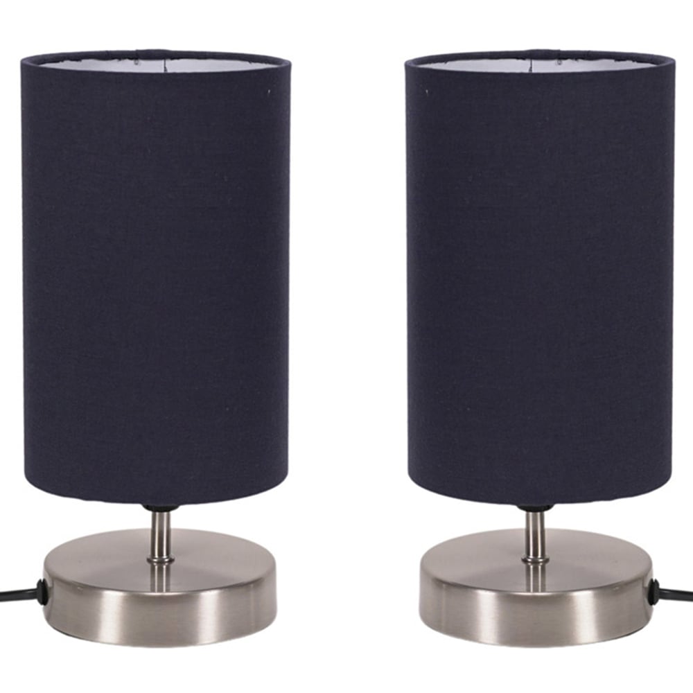 ValueLights Francis 2 Pack Gold Touch Table Lamp with Navy Shade and Bulb