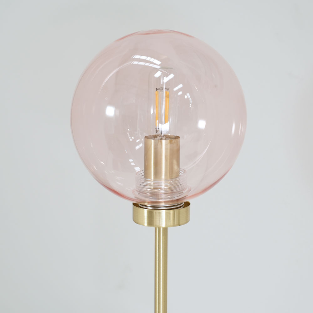 ValueLights Frenchie Pink Tinted Globe Gold Stem LED Table Lamp